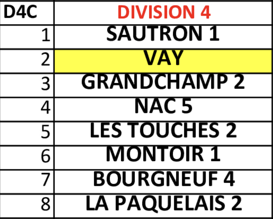 Classement CDV D 2 groupe A